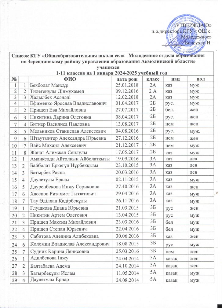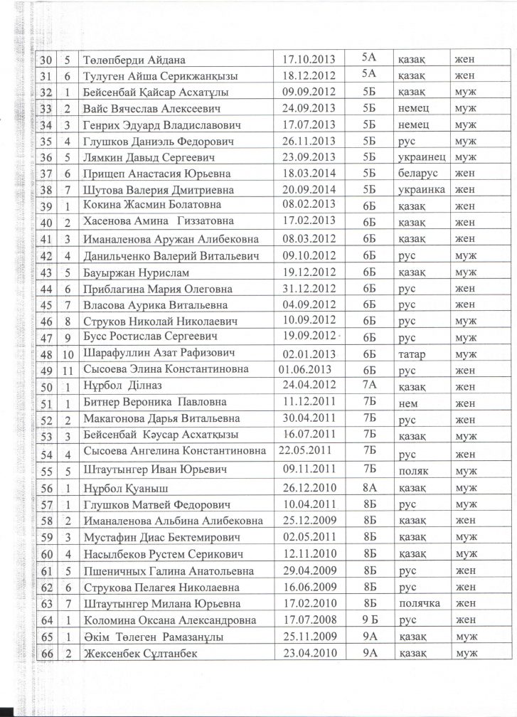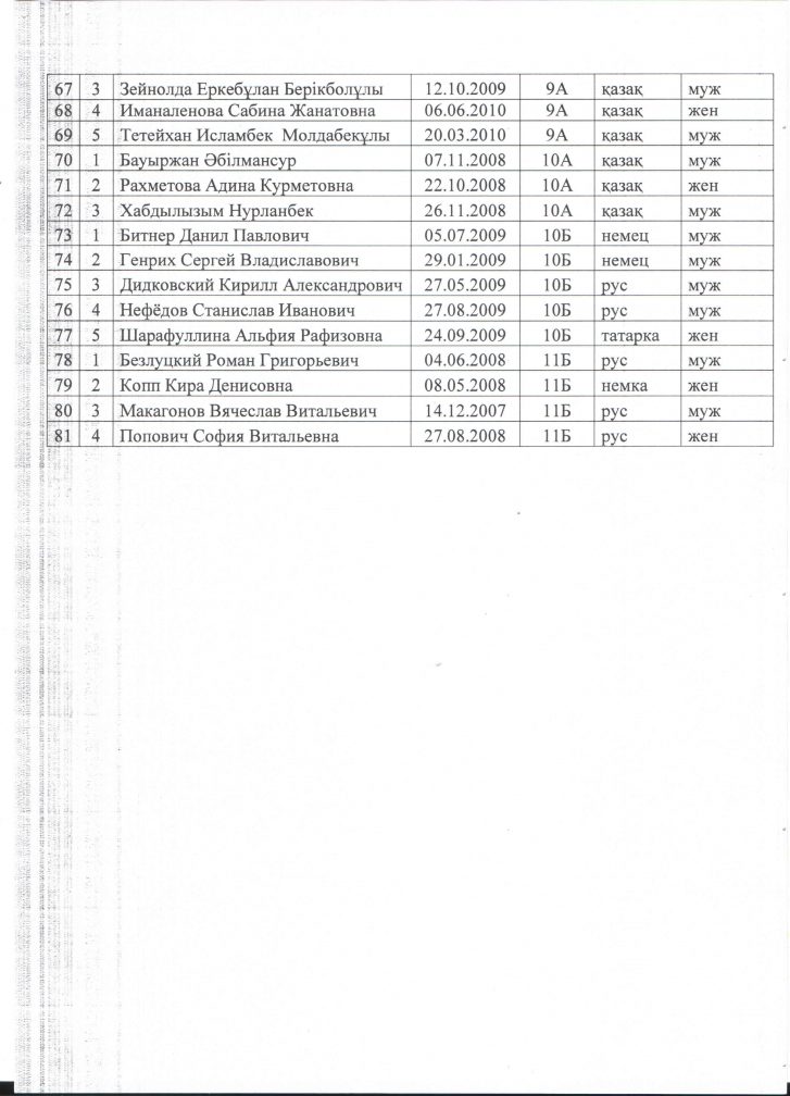Оқушылардың сапалақ тізімі 2024-2025