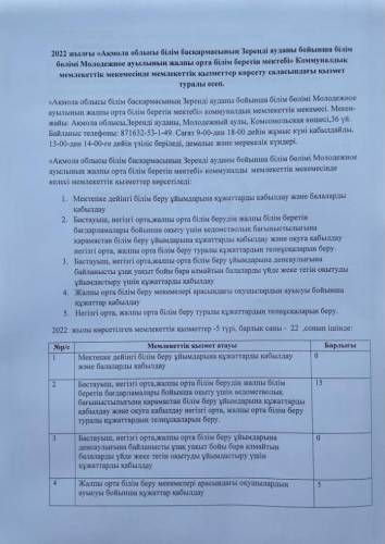 "Молодежное ауылының ЖОББМ" КММ-нің 2022 жылғы мемлекеттік қызметтер көрсету саласындағы қызметі туралы есебі.