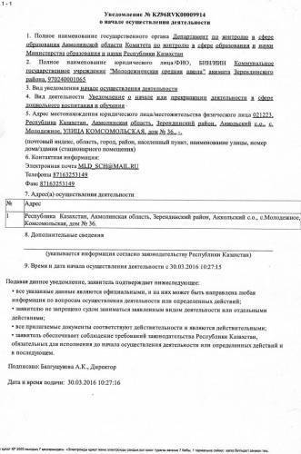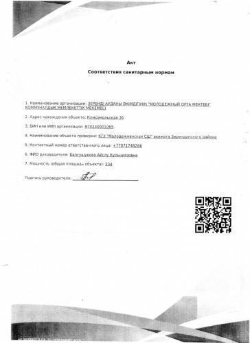 Коммунальное государственное учреждение "Общеобразовательная школа села Молодежное отдела образования по Зерендинскому району управления образования Акмолинской области"