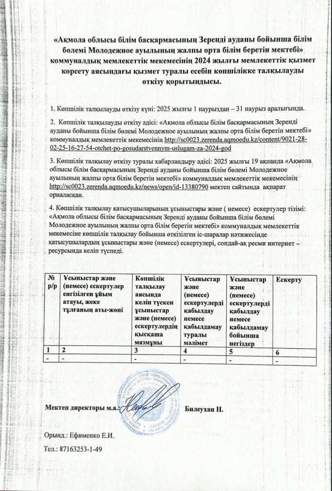Коммунальное государственное учреждение "Общеобразовательная школа села Молодежное отдела образования по Зерендинскому району управления образования Акмолинской области"