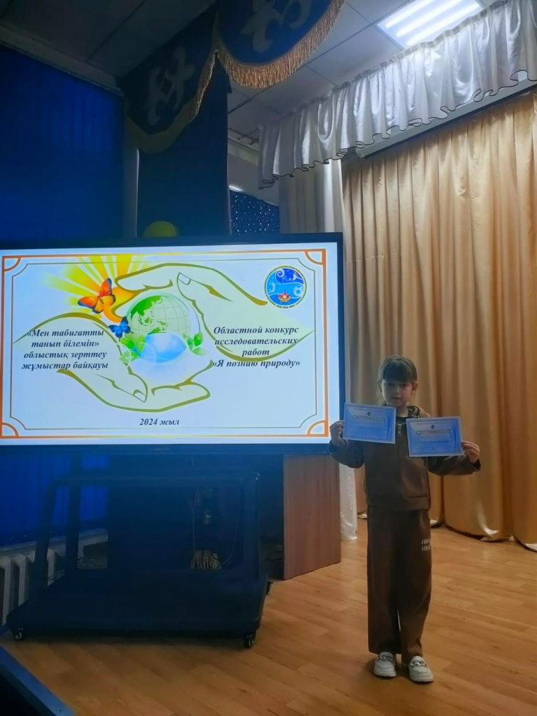 "Мен табиғатты танып білемін" атты облыстық зерттеу жұмыстар байқауы өз мәресіне келіп жетті. Біздің 2"Б" сынып оқушысы, Никитина Дарина осы байқауға "Экология - әрқайсымыздың ісіміз" атты номинациясына қатысып, белсенділігі үшін Сертификатпен...