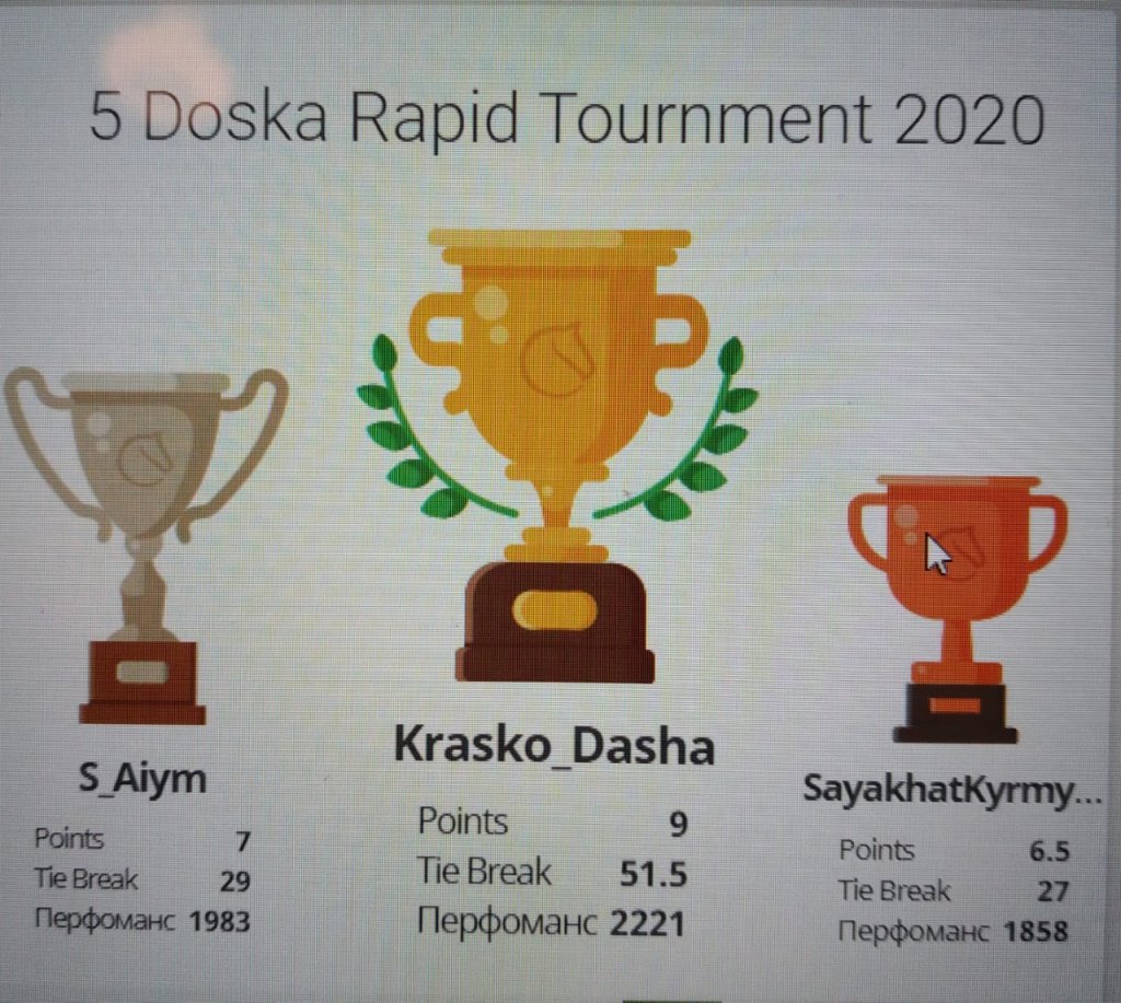 Біздің мектептің оқушылары Зеренді ауданындағы орта мектептер оқушылары арасында шахматтан онлайн турнирге қатысты. 8 сынып оқушысы Саяхат Қырмызы 3 орынға ие болды